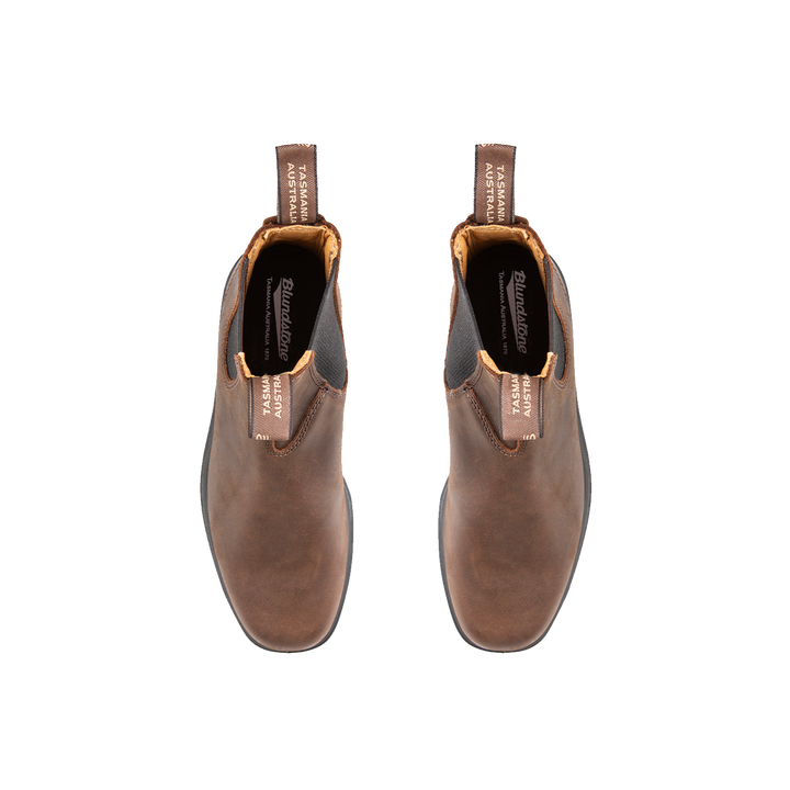 Here’s a dressy twist on a Blundstone boot in a leather with deep character. The #2029 Blundstone Dress Chelsea in Antique Brown looks like you’ve owned them forever. And you might! Chisel toe shape is a dressier cut that gets the job done. Unbeatable Blundstone all-day comfort and long wear.