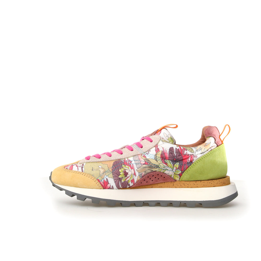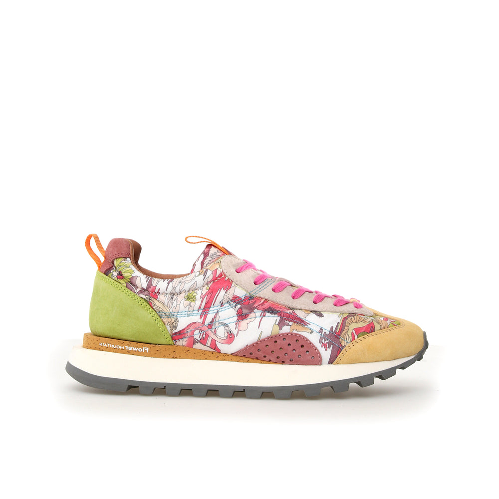 The Flower Mountain Sneakers made of 'Kurashiri Hanpu', an incredible natural cotton canvas made in the Japanese city Kurashiki. This very special fabric is extremely durable and highly transpiring, and becomes more valuable in time; it is used by many artists as a painting canvas. All Flower Mountain shoes have leather linings and an extra natural cork insole treated with AGION, a natural mineral compound that prevents the formation of mould and forms a barrier against bacteria, making Flower Mountains shoes hygienic, very comfortable and durable. Flower Mountain shoes have light non-slip bottoms, and are the perfect choice for trekking and walks.