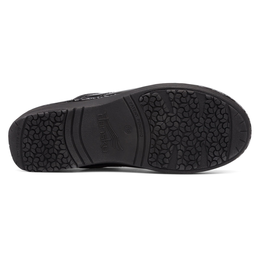 Removable leather-covered dual density PU footbed with Dansko Natural Arch® technology and memory foam for cushioning and support.