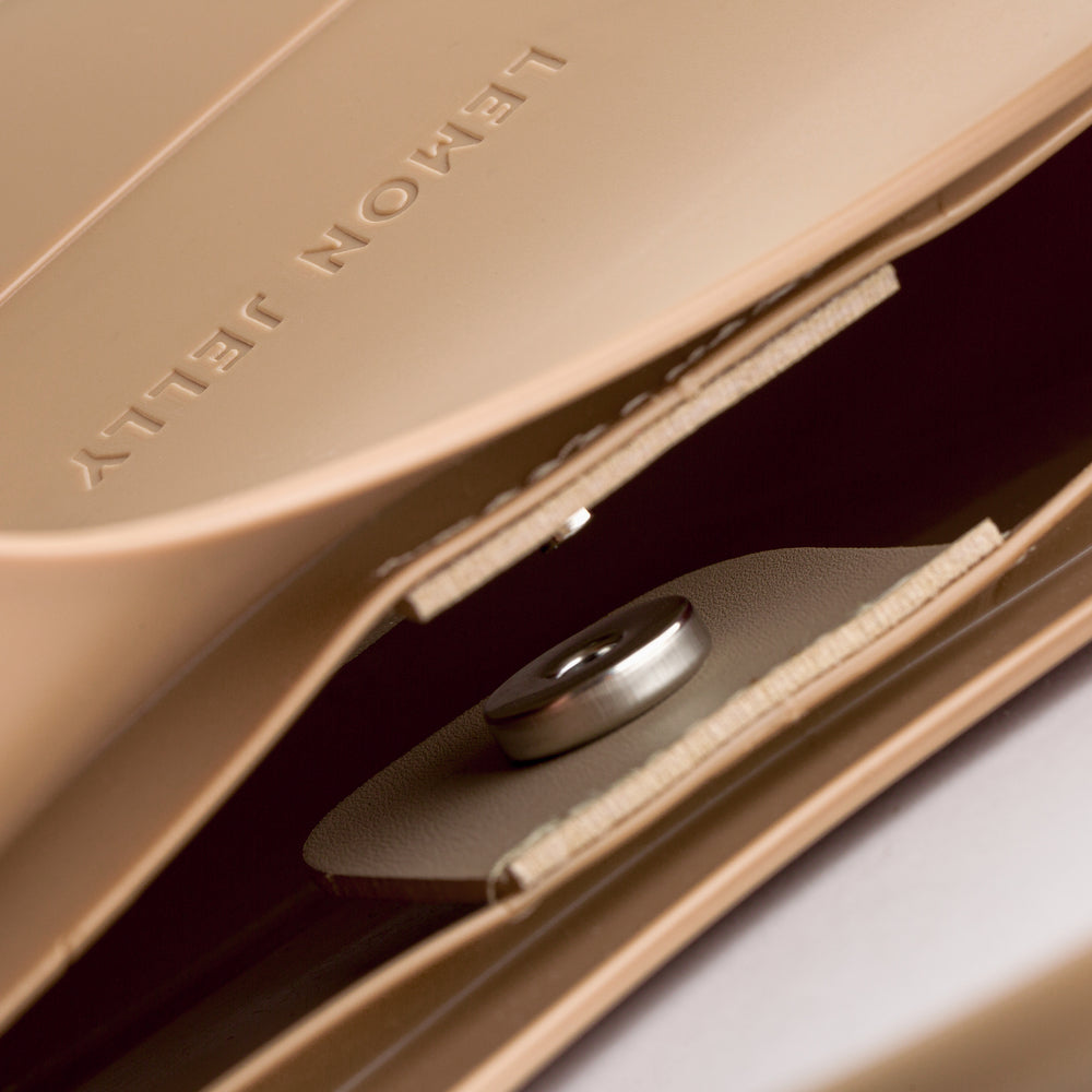 This black PVC bag is a must-have detail to match your favourite jelly boots. Discreet and able to pull off an elegant ensemble to complete your look, this black handbag is set to be a daily companion, carrying your essentials wherever you go. Lemon-scented, vegan and produced with high-quality materials for a long-lasting life by your side, easily washed and kept in shape for many years of celebration.