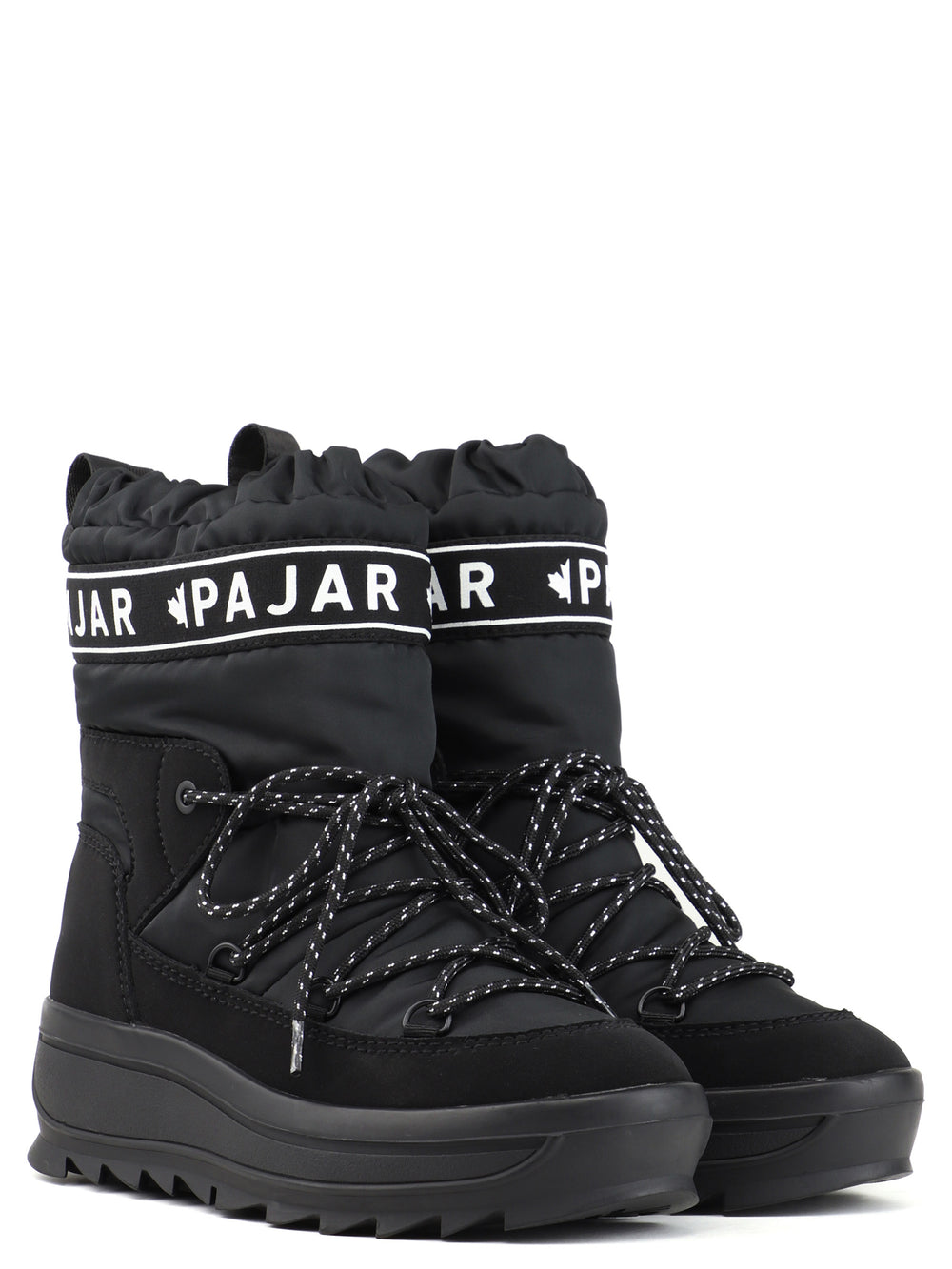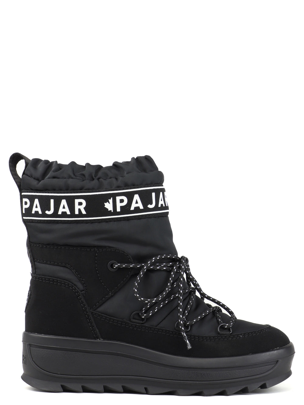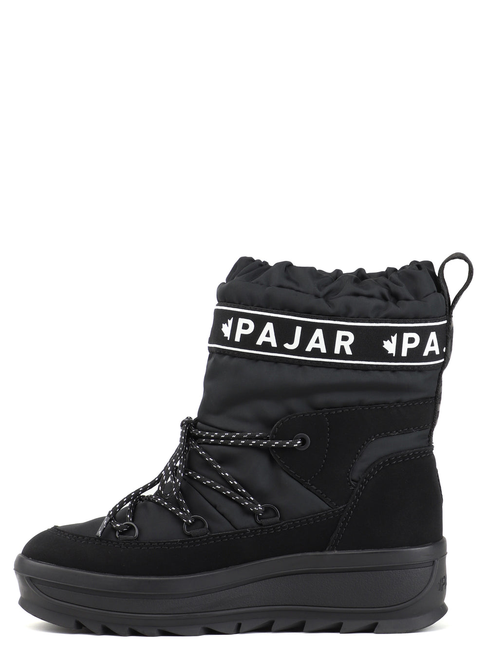 The Galaxy features all the benefits of Pajar Canada’s classic nylon Toboggan boots, with a splash of extra fashion in a puffy nylon with knit logo webbing on 6in nylon upper. The upper is entirely seam-sealed and comfort rated to -30°C to keep your feet snug all winter long with a vegan nubuck leather mudguard. The signature Pajar Canada Toboggan thermal rubber traction lug sole with 1-inch platform and 1.5-inch heel will get you through icy streets in style keeping you surefooted all the while. Our premium comfort insole features a cushy wool blend that is both breathable and anti-microbial. The waterproof upper has been pre-treated to repel water and stains.