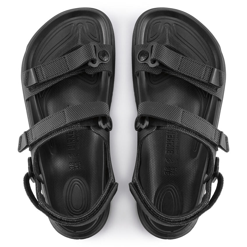 The BIRKENSTOCK Kalahari for women - designed to bring Birkenstock comfort and support to your favorite trail and water based activities. These off-road ready sandals feature a direct attach PU footbed, a rugged PU/TPU outsole for added traction and sturdy hook and loop closures for a secure fit. The upper is made from the skin-friendly, hard-wearing synthetic material Birko-Flor®.