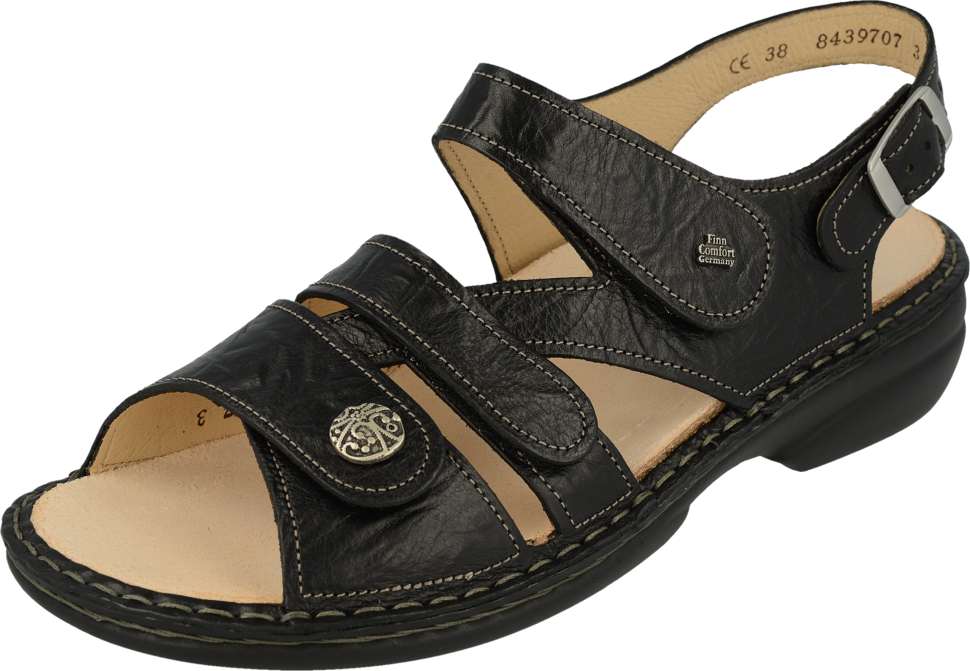 Then we have the right shoe for you. This model is equipped with three Velcro straps, an adjustable heel strap, an additional press stud and a decorative ornament. With its flexible PU sole with a medium drop, which is connected with a high-quality hand seam, this model from Finn Comfort is the ideal shoe for on the go.