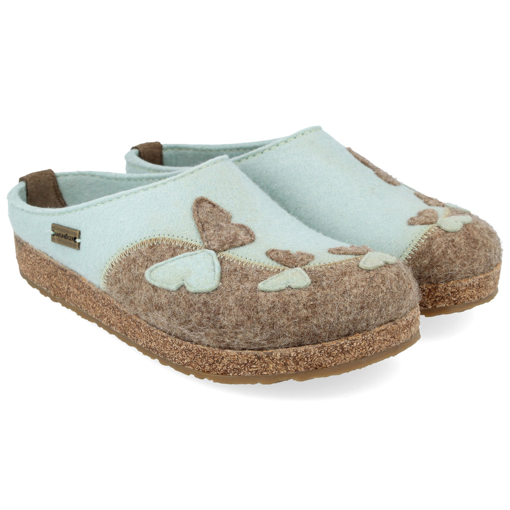 Wonderfully comfortable felt clogs using Haflinger’s unique flexible footbed. The foot is held securely by the gently contoured footbed and the raised rim of felt surrounding the heel. All the Haflinger clogs with the cork footbed have a comfortable arch support, the highest of all the Haflinger styles. Especially good for those who need extra support. Ideal to withstand everyday wear with a hardwearing sole. They are also a perfect house shoe because they are so easy to kick on or off. Normal to wide fit. Cork-latex footbed and toasty felt uppers keep your feet comfortable. Insulated and warm in winter, cool in summer.