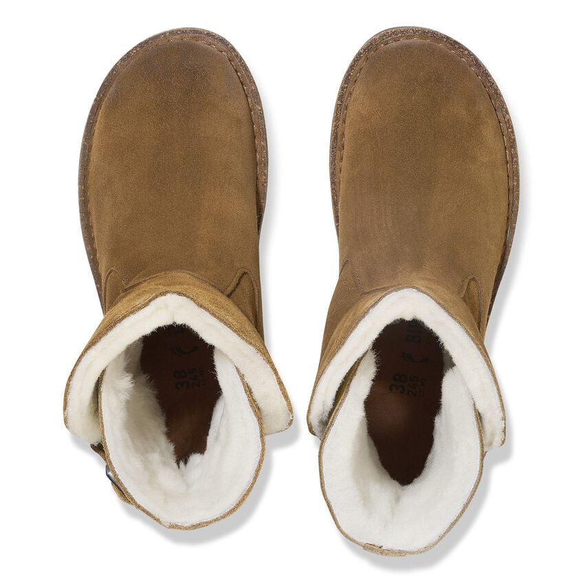 L’Uppsala de BIRKENSTOCK est une botte mi-mollet à enfiler pourvue d’une doublure en rason véritable douce et chaude qui est naturellement isolante. La semelle d’usure à traction supplémentaire est parfaite pour l’hiver. Elle est dotée d’une élégante boucle ardillon en métal avec logo en relief, permettant un ajustement personnalisé. Le dessus, recouvert d’un fini imperméable, peut être facilement nettoyé avec la brosse pour le cuir velours BIRKENSTOCK.