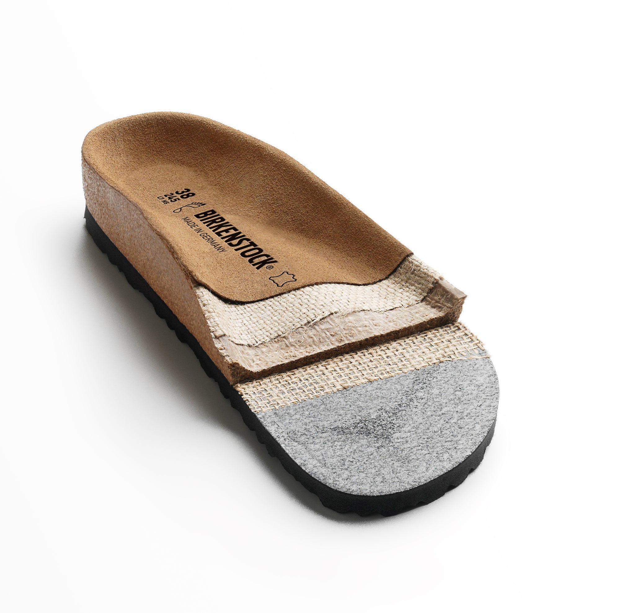 Les semelles Birkenstock sont faites à partir de liège et de latex naturel préformées à la forme d'un pied en bonne santé. Ces courbes assurent la distribution de votre poids: les arches surélevées aider à soutenir la forme et la structure naturelle du pied. La barre au niveau des orteils permet a ceux-ci de s’agripper, de stimuler la circulation, de faire travailler les muscles de la jambe tout en contribuant à maintenir votre équilibre. La configuration profonde au talon assure le maintient des coussinets naturels du pied sous votre talon pour assurer sa stabilité. En conséquence, les bons os sont impliqués pour supporter le poids du corps tout en gardant la colonne vertébrale et les jambes dans un bon alignement.